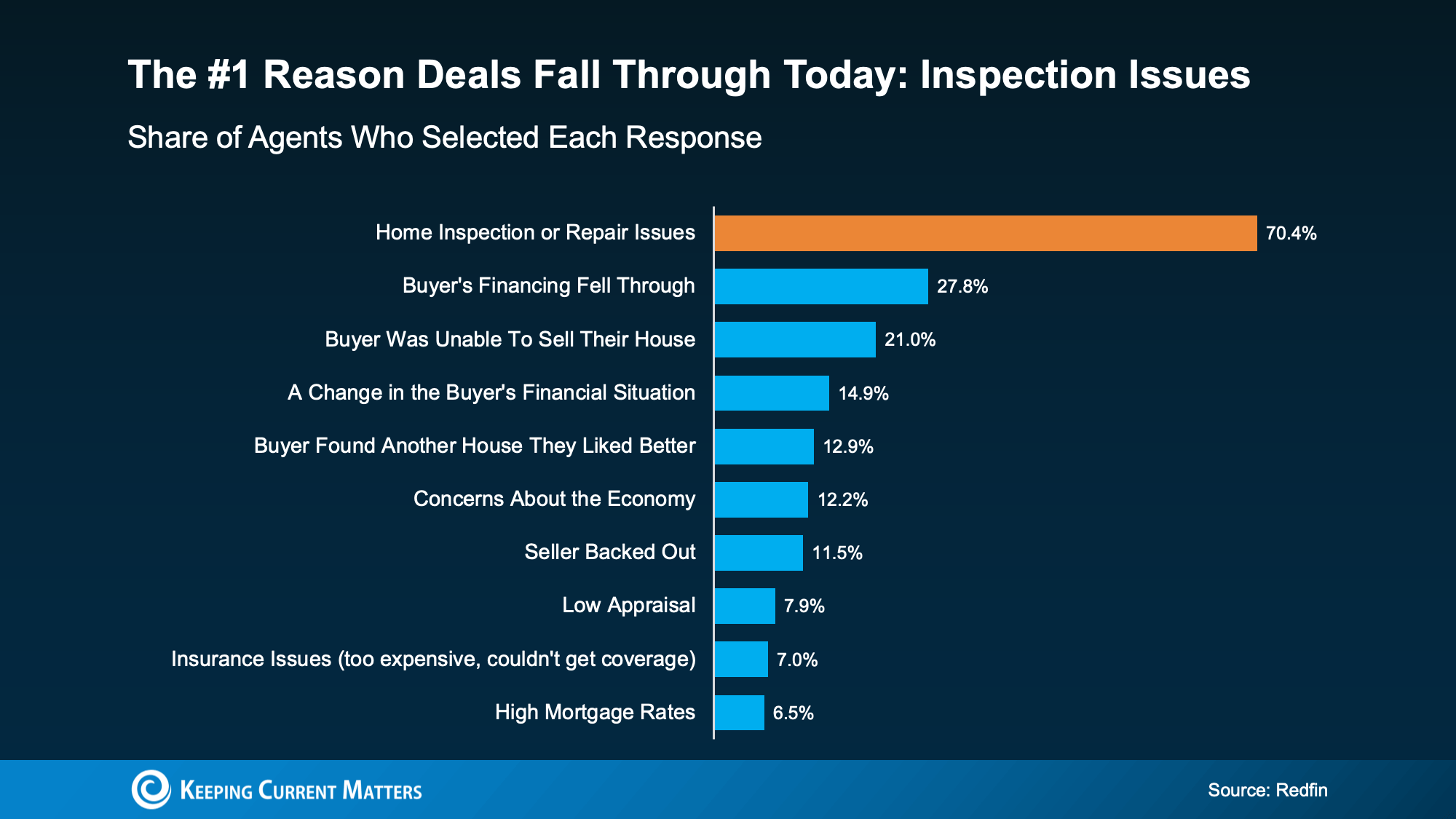 You might assume the main reason buyers are backing out today is financing. But that’s actually not the case. The most common deal breaker today, by far, is inspection and repair issues (see graph below):