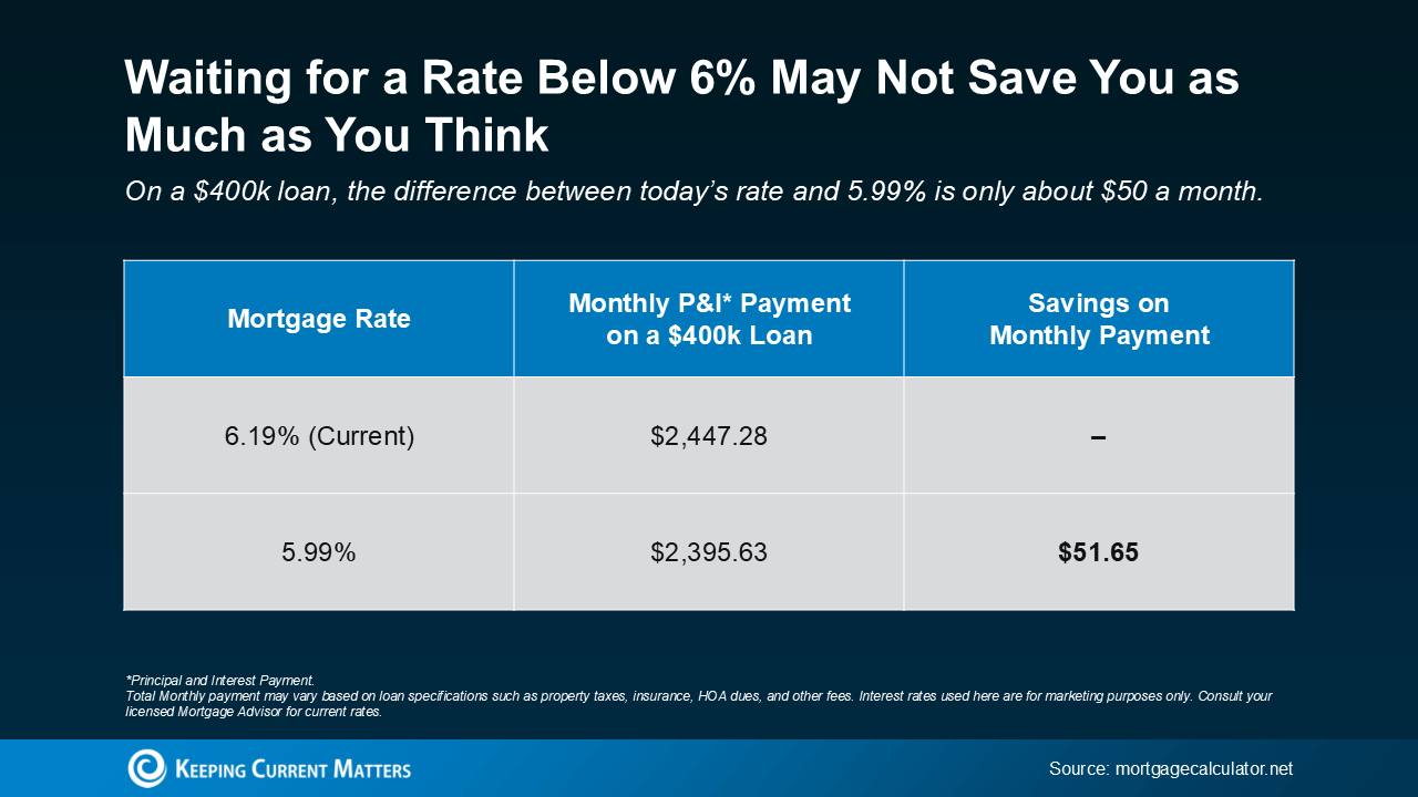 And while a 5.99% rate might sound like a big win, if you’re waiting for that number to make your move, it might not actually save you as much as you think. Here’s how the math looks when you run the numbers (see chart below):